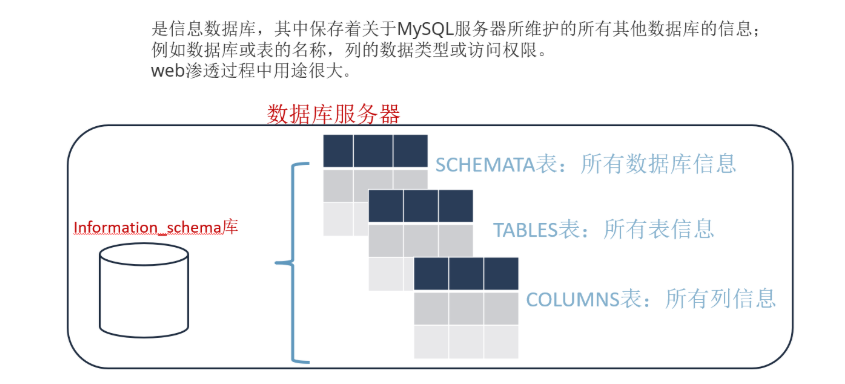 1.information_schema 库:是信息数据库,其中保存着关于MySQL服务器所维护的所有其他数据库的信息;