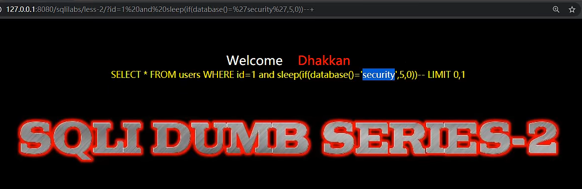 由于靶场使用的数据库是security,于是会加载五秒钟,这样可以判断出有回显效果。